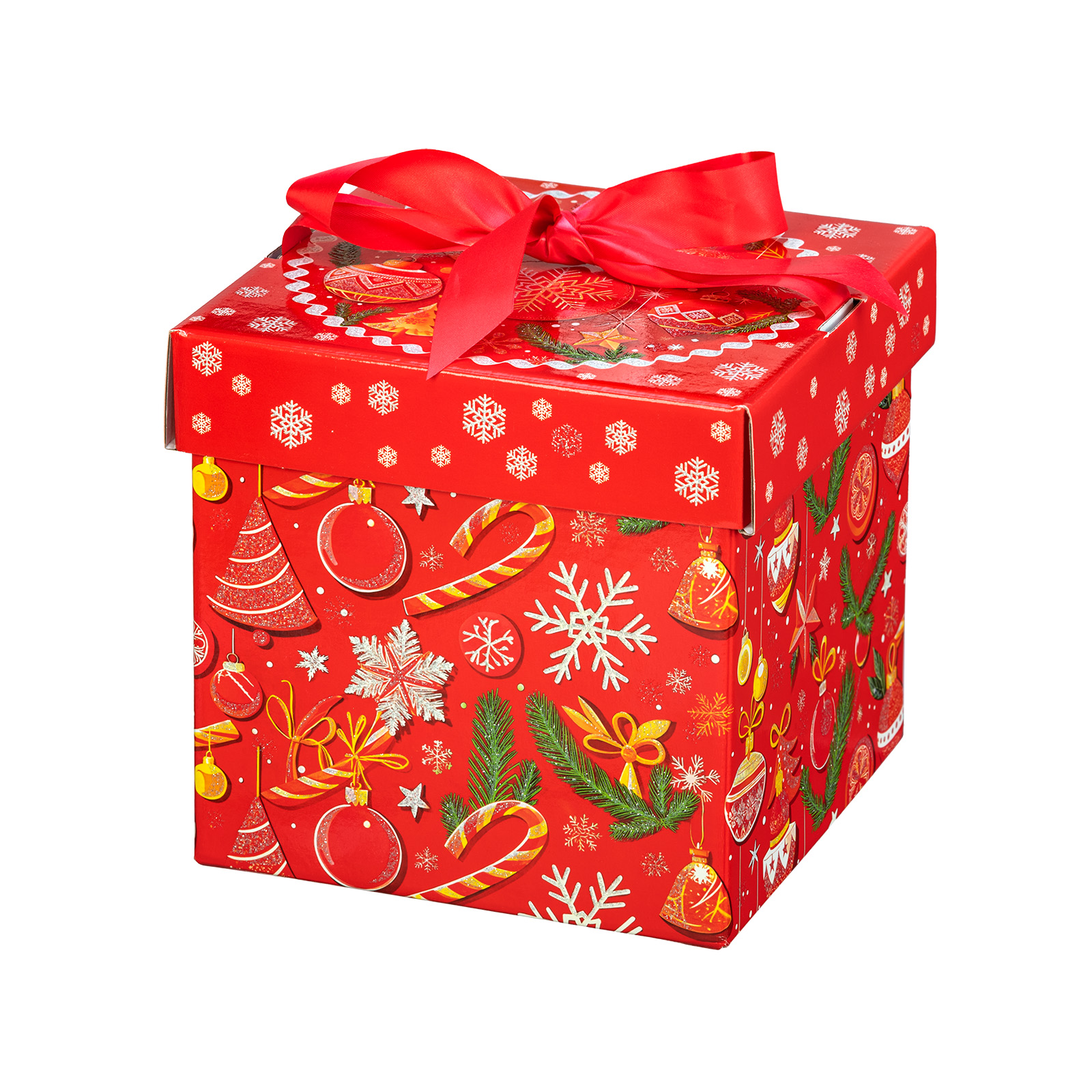 Премиальный подарочный набор, который идеально подойдет в качестве презента взрослому сластене. Такой сладкий подарок можно смело вручить школьному педагогу, коллеге или руководителю - восторг гарантирован. Подарочная упаковка выполнена в виде красного куба с алым бантом на крышке. Сам куб со всех сторон украшен разнообразными новогодними узорами. Изнутри подарок также прекрасен: в его состав входят премиальные сладости от ведущих кондитерских предприятий. С таким подарком любое вечернее чаепитие превратится в самый настоящее торжество!