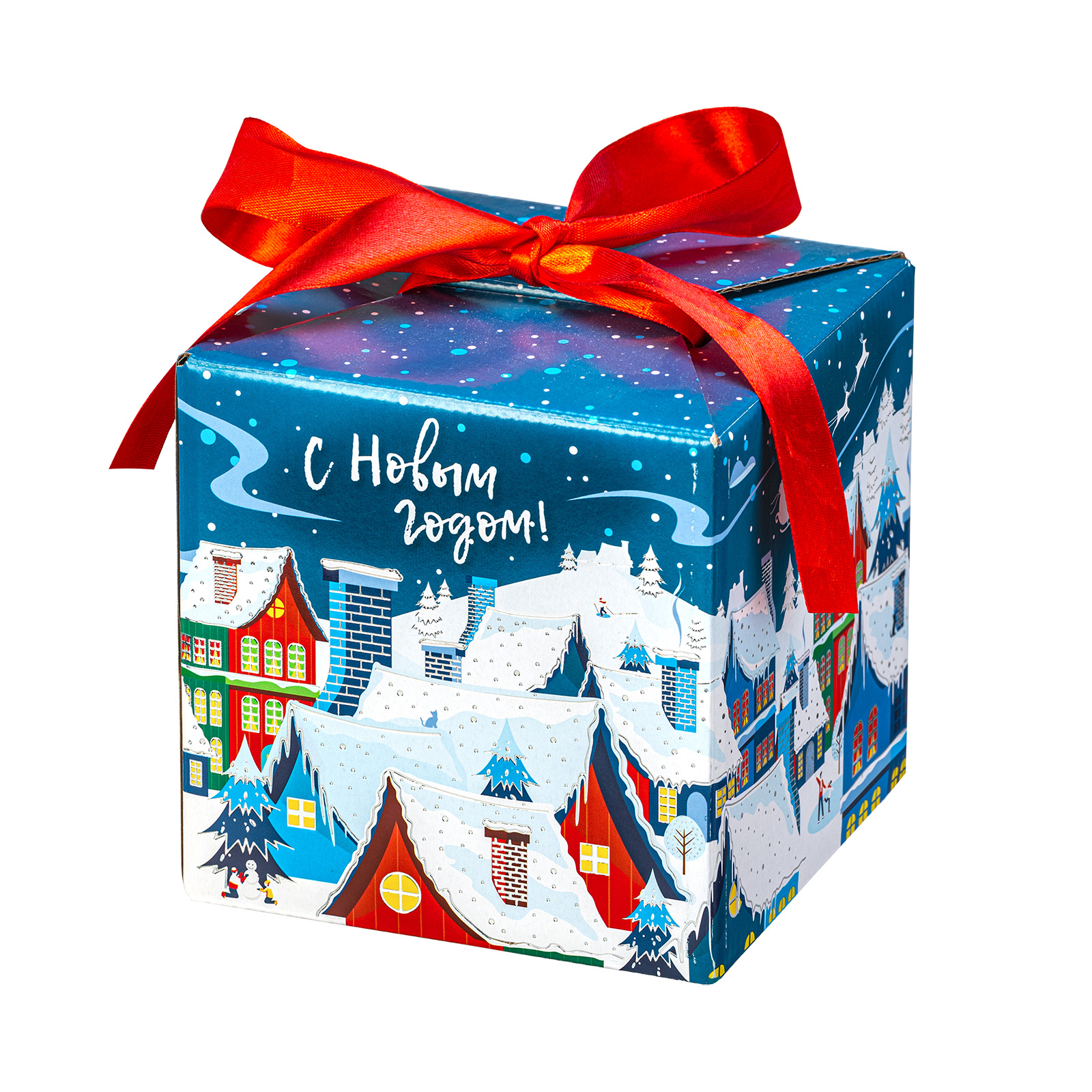 Ищете новогодний подарок для ребенка или взрослого? Присмотритесь к подарочному набору “Зимняя палитра”. Это небольшой картонный кубик с изображением заснеженного ночного города и небольшой поздравительной надписью. На верху упаковки есть небольшой контрастный бантик, потянув за который, вы откроете самый настоящий ларец с сокровищами. В этот подарок входят отборные сладости, с которыми любое вечернее чаепитие превратится в самое настоящее торжество, а также небольшой памятный сувенир, благодаря которому атмосфера тепла и радости надолго сохранится в вашем доме.